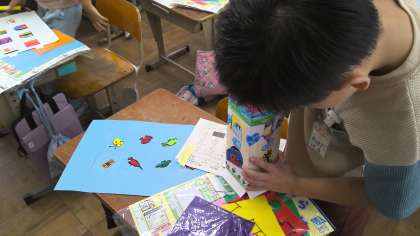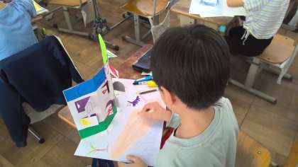 「まどからこんにちは」の作品が少しずつ仕上がってきました。もうすぐ完成です。どんな作品になるのか楽しみです。