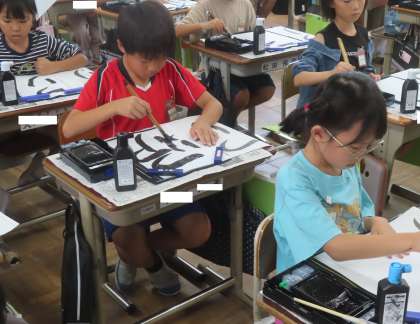 書写の学習では、「つり」にチャレンジ。