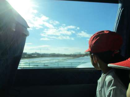 遠足の約束をたしかめて、バスに乗りました。