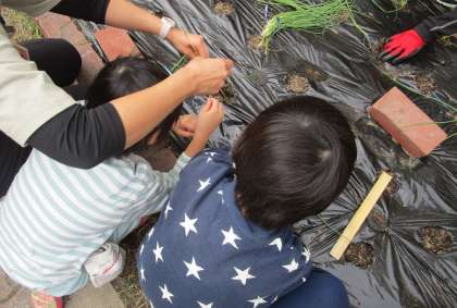 3cmほどの深さに埋めて土をかけることを伝えると、