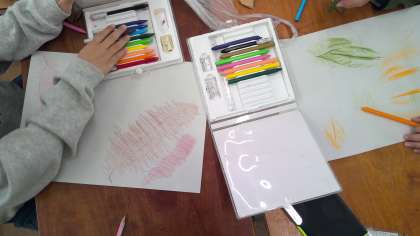 「わあ!模様が出てきた!」「鳥の羽みたい!」と楽しんでいました。