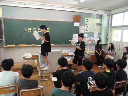 最後に代表でみんなの前で「柿山伏」を発表したいというペアがあったので、発表してもらいました。