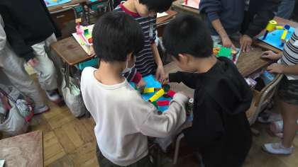 友だちの作品で遊び、良いところを伝えあいました。