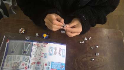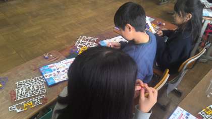 社会では、これからの工業生産とわたしたちの単元でガンダムのプラモデルがどのように作られているか学習しました。実際にプラモデルも作ってみました。パーツが小さくて難しく苦戦しましたが完成すると「できた!」と喜んでいました。