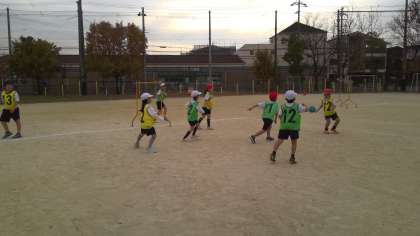 寒い中でしたが、みんな元気に走り回りました。守り方も工夫しながら頑張っていました。パスゲームは来週の体育で終了です。みんなで協力して活動できればいいなと思います。