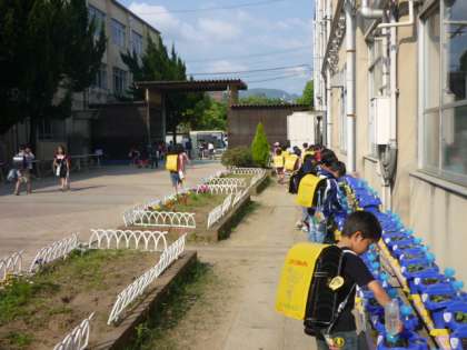 子どもたちは,登校してすぐに水やりをしたり,植物の観察をしたりしています。自分が植えた植物の成長に関心をもって,毎日世話をしています。
