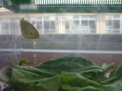 3年生が育てていたモンシロチョウのさなぎが成虫になっていました。