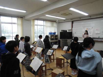 卒業式に向けて「旅立ちの日に」の歌練習をおこなっています。