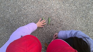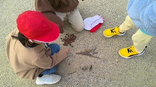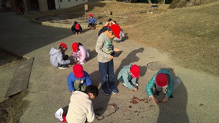 アルプスに落ちている枯葉や枝、どんぐりなどを集めて、すきな形にならべていきました。