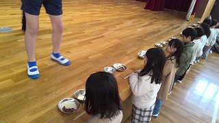 中間休みに給食委員会企画の「豆つまみ大会」に参加しました。