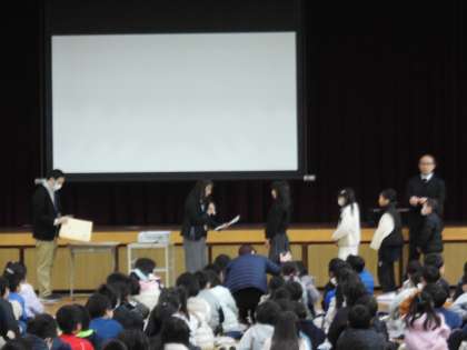 その後、児童集会でたくさんの委員会が発表し、学校をよりよくしようと取り組んでいました。