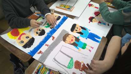 「楽しかったよ、ドキドキしたよ」の学習をしました。1年間の思い出を絵に表しています。だんだん絵が完成してきました。丁寧に描いて素敵な絵に仕上げたいと思います。