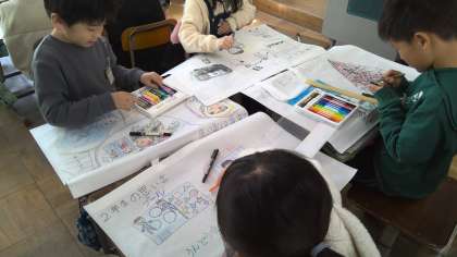 楽しかった思い出を思い出しながら、作品バッグを作りました。一年間で作った作品の数々を持ち帰ります。一つ一つ、がんばって作った作品ばかりです。お家でも見返し、学習のふり返りをしてほしいと思います。