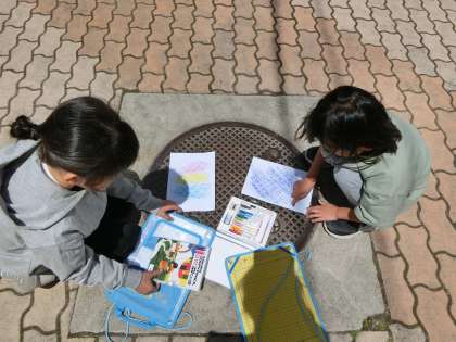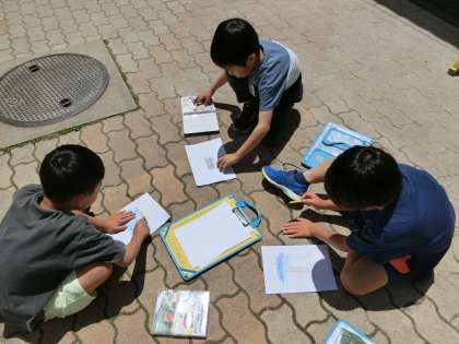 図画工作科で身のまわりにあるでこぼこを探し、写し取りを楽しみました。いろいろなところのでこぼこを見つけ、友達と教え合って面白さを共有しながら進んで活動に取り組みました。