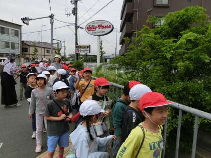 生活科で校区の町探検に出かけました。安全やマナーに気を付けていいなと思うところを見つけようと出かけました。事前に出し合ったお気に入りの場所や人を意識しながら探検しました。初めての場所の子も多く、新鮮さを感じているようでした。来週は、2回目3回目のたんけんに出かけます。