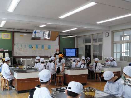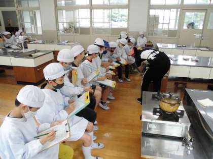 家庭科の時間に「ご飯の炊き方」の学習をしました。