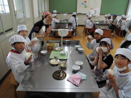 ご飯が炊けたあとは、おにぎりにしていただきました。
