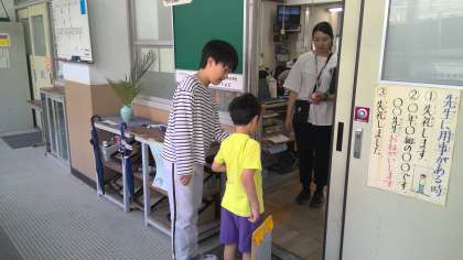1年生の目線に立って話しかける姿や、1年生を気遣う声かけをしている姿がありました。