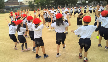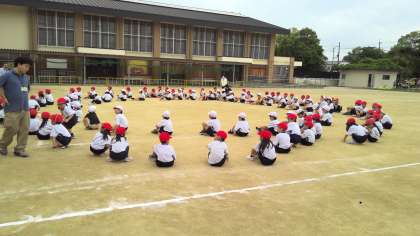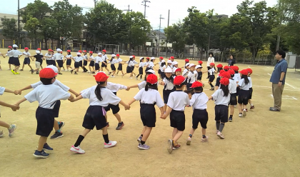 ロシアのタタロチカという踊りを、3クラス合同で行いました。