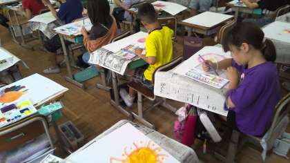 「絵の具でゆめもよう」の学習で試した技法を使って