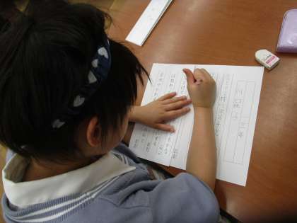 お手本の字の「止め」、「はね」、「はらい」をしっかり見て、丁寧に書くことができました。