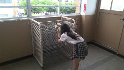 大きさの違う半分の形を手前と奥の2か所につけて、どこからか見ると一つの形が出来上がるようにつける場所を考えていました。