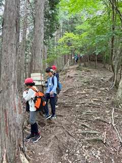 急な下り坂をみんなで声かけあって降りてます!
