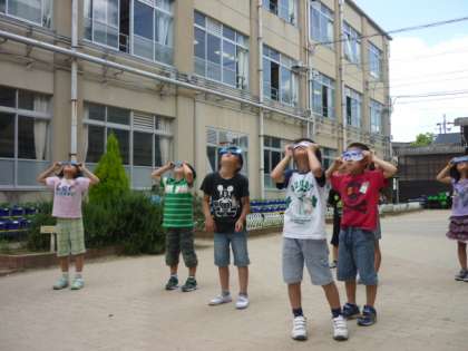 午前7時から午後2時前までの約6時間半,太陽と金星、地球がほぼ一直線上に並びます。太陽めがねで観ると,金星が黒い点となって太陽の前を横切っていくように見えます。先月の「金環日食」に続く、珍しい天体ショーで、今回見逃すと次は105年後だそうです。