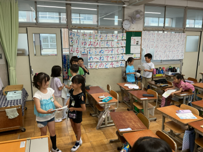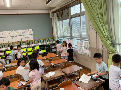 書き上げたあと、友達と交流し、感想を伝え合いました。