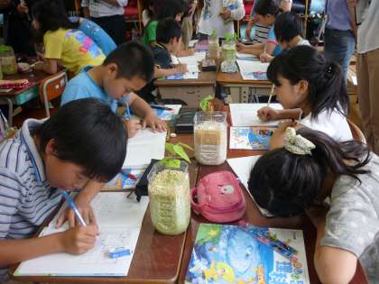 6月8日(金)5校時,5年1組の理科「植物の成長」の授業を本校の教職員が参観して,研修を行いました。