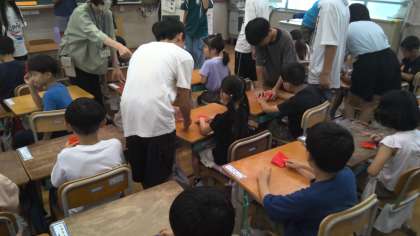 6年生は、折り鶴に込められた思いを伝えたり、折り方をやさしく教えたりしていました。