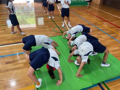 体育ではマット遊びに取り組んでいます。