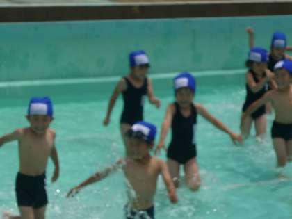 1年生は,小学校の大きなプールでの学習は今日が初めてです。
