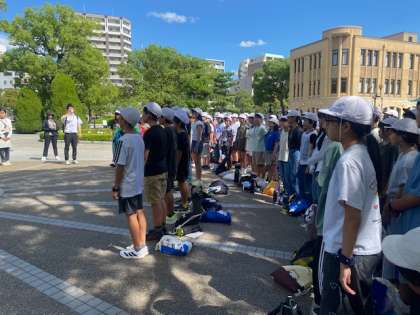 平和公園に着き集会を行いました。原爆の子の像の前で、担当の子どもたちの立派な誓いの言葉に続きになも平和を誓いました。