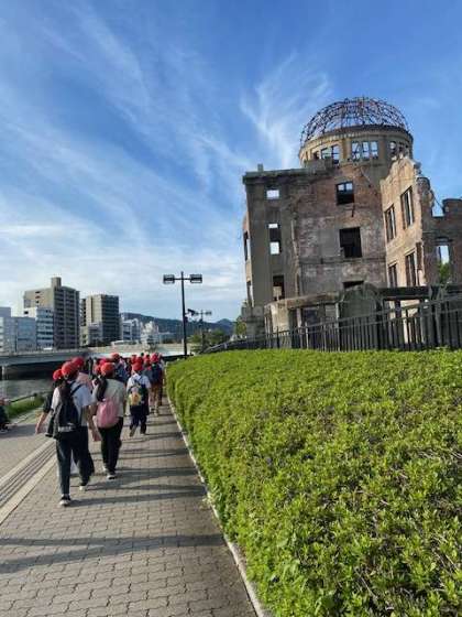 平和公園の中を歩き、これからバスで宿へ向かいます。行程通りに進んでいます。