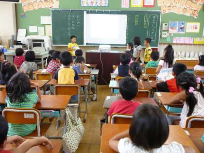 描いた絵をプロジェクターでうつして説明をし,質問をうけたり,答えたりもしました。