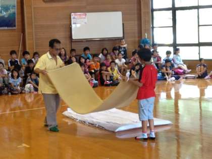 入所式のあと,寝具の使い方を教えていただきました。