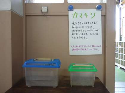 カマキリ2匹を展示しています。