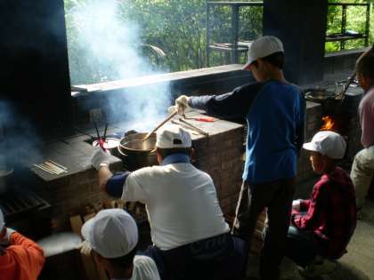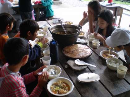 自分たちで作った山の家1日目の夕食、「おいしい!」「上手にできた!」と子どもたちは満足そうにお替りをしていました。