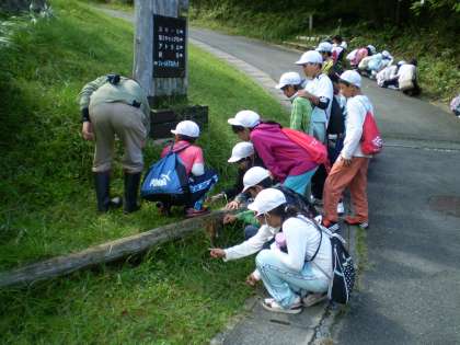 午前の活動は自然観察です。山の家の所員の方にいろいろと教えていただきながら、秋の花や木の実を観察したり、草花を使った遊びをしたりして、自然を満喫しました。