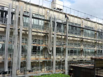10月4日(木),中校舎は工事用シートですっかり覆われました。