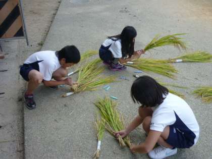 10月16日,5年生はひょうたん池で育ててきた稲を収穫しました。