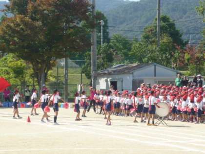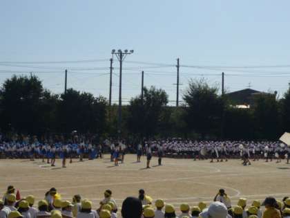 応援合戦で午後の部がスタートしました。どの色も優勝目指して真剣に声を出しています。自分たちの応援だけでなく,他の組の健闘をたたえ,互いにエールも送ります。