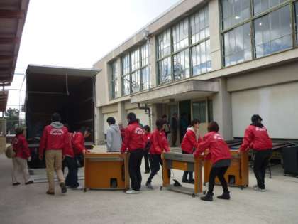 教職員は,小学校と中学校を往復し,ミュージックサークルの楽器の搬入・搬出を行いました。