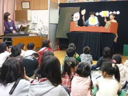 どのお話にもバックミュージックを入れるなど,雰囲気がよくわかるような工夫もされていて,短い時間の中で,「本の楽しさ」を十分に子どもたちに伝えていただいていました。
