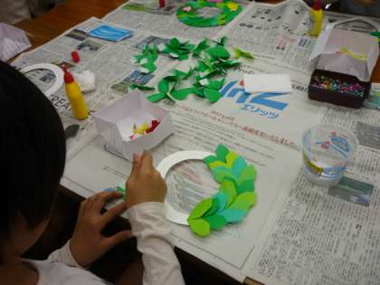 みんなそれぞれに工夫して,かわいいリースを作りました。
