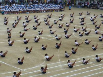 例年,運動会の締めくくりは,6年生の『組体操』です。素晴らしい演技の裏には,これまでの練習の積み重ねが隠れています。努力すること,続けること,信じあうこと,すべての集大成が今日このときです。では,じっくりとご覧ください。