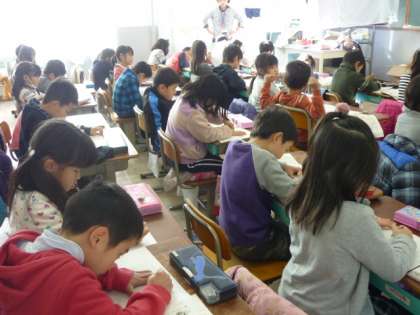 1年生は国語で「かるたをつくろう あつまれ,ふゆのことば」の学習をしています。