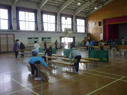 6年生が体育館の長イス等の準備をしてくれました。