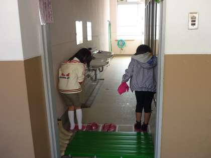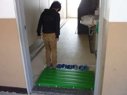 トイレでは,次の人が使いやすいように後ろ向きにスリッパを脱ぎます。